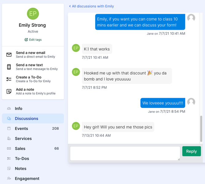 Increase client engagement and retention through perfectly targeted communications, mass email and SMS campaigns, and 2 way SMS conversations.