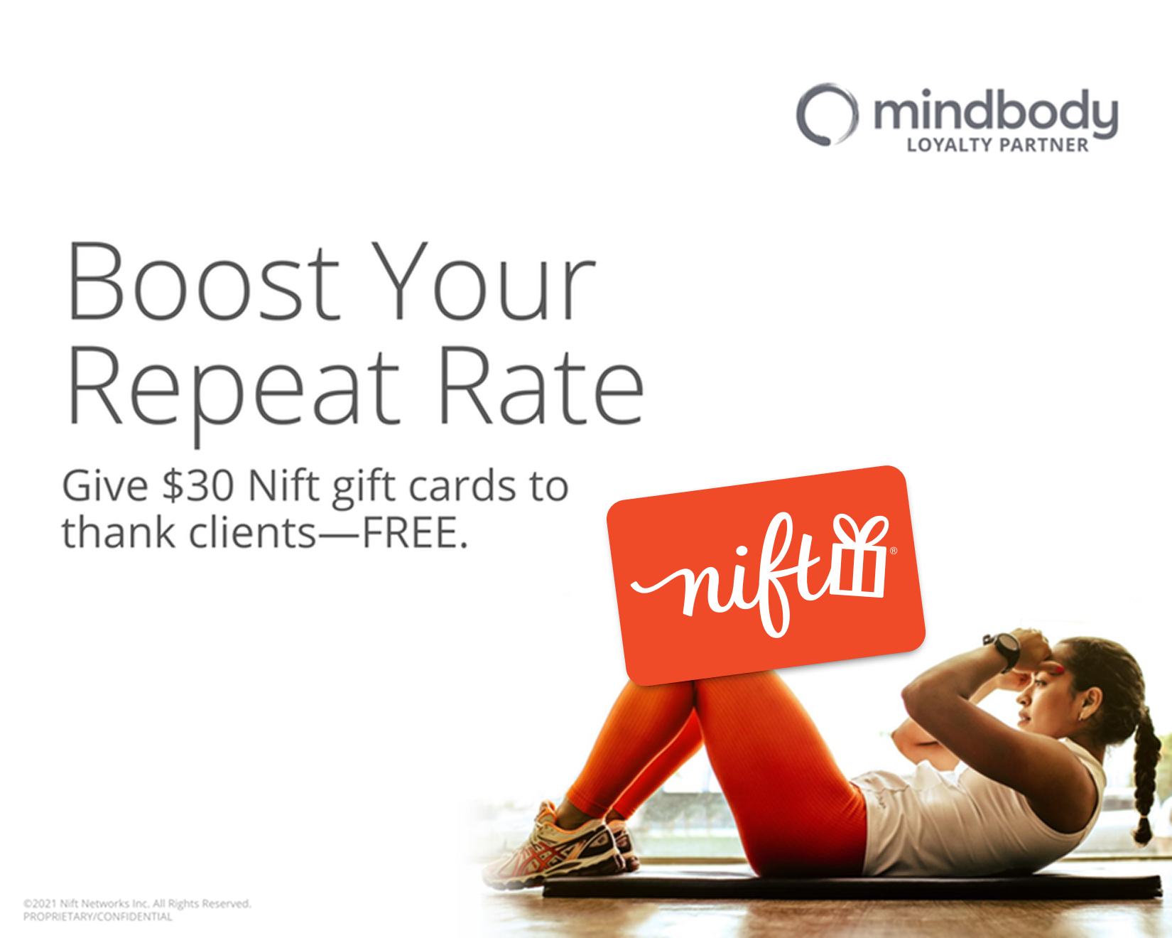 The Mindbody-Nift partnership offers members a new way to say thank you — a $30 Nift gift card customers can use toward healthy snacks, clothes, vitamins, and more — free of charge. Connect to keep your business top of mind and keep your best customers coming back.