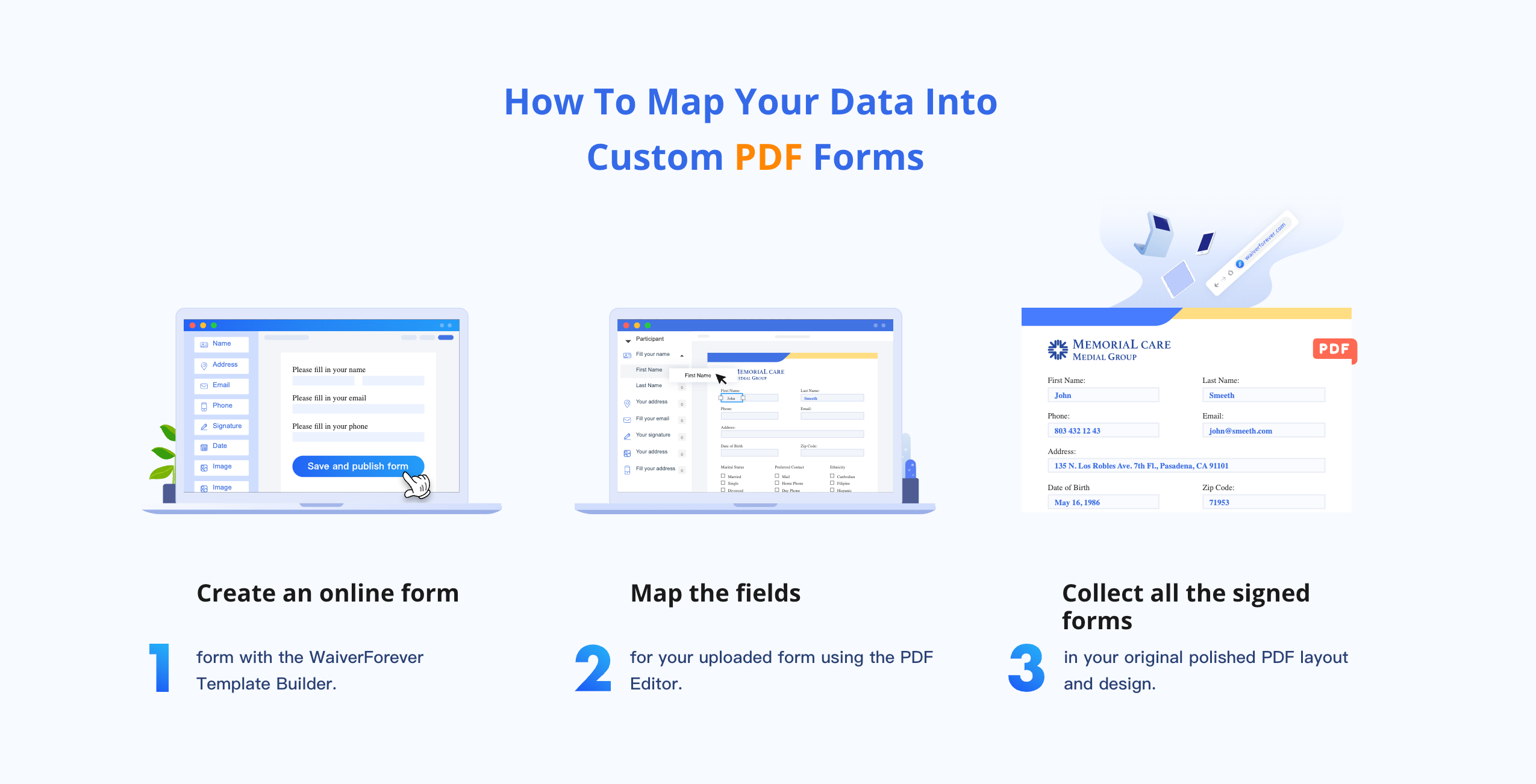 Simply drag & drop to create legal binding custom online waiver template or directly upload your current PDF using our PDF Mapping feature.