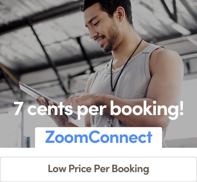 • Starting at less than $0.07 per booking, ZoomConnect is incredibly affordable with lots of room to grow.
