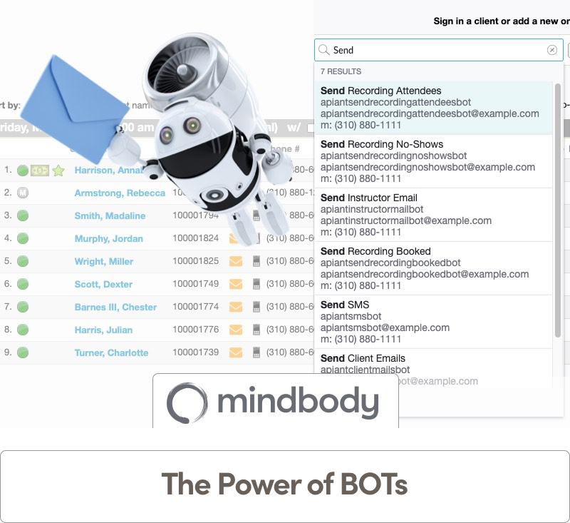 • With our awesome ZoomConnect BOTs 🤖, you have full control of Zoom, emails and SMS without leaving Mindbody.