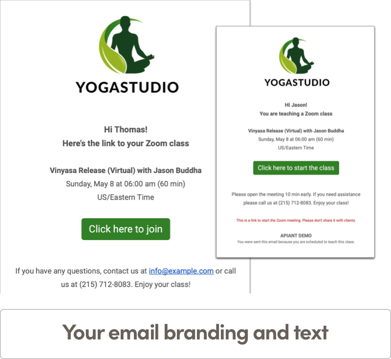 • A Zoom link email or SMS will be sent immediately for last-minute Mindbody bookings so you never turn down business.